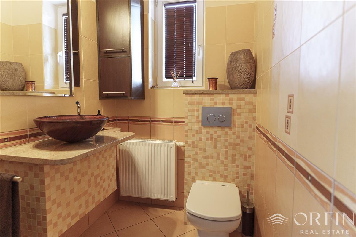 Piec 2 funkcyjny gazowy Vaillant 24kV z zasobnikiem wody 120l. Ogrzewanie centralny, w łazienkach i wc ogrzewanie wodne podłogowe W domu zainstalowany jest system alarmowy. Nieruchomość ma bezpośredni dostęp do dr. gminnej.