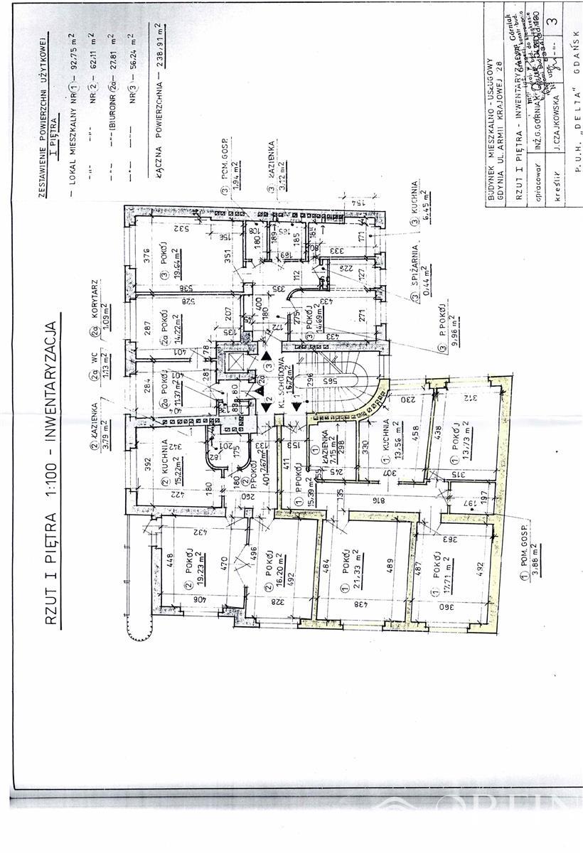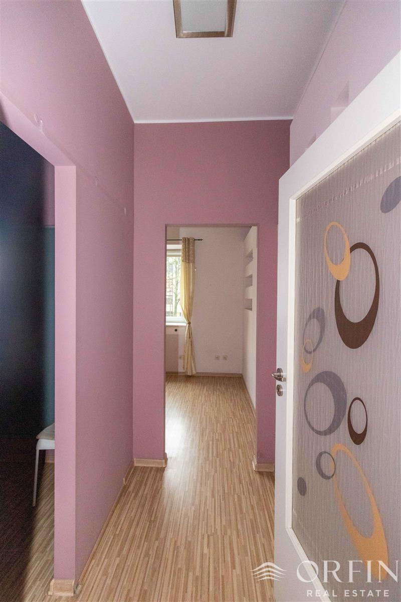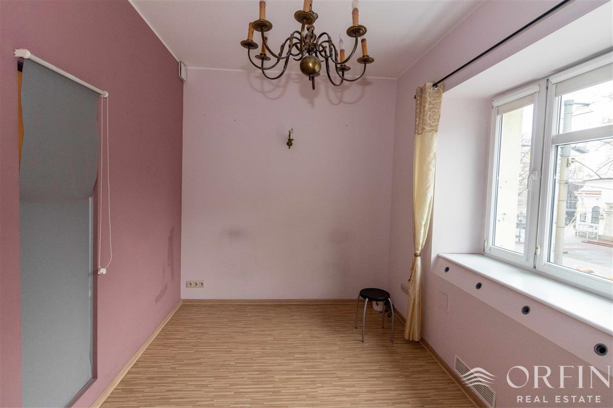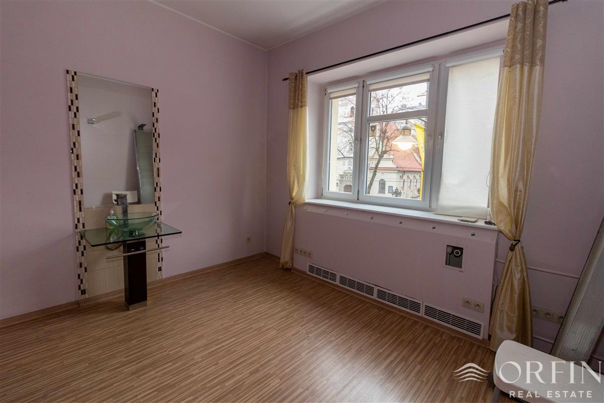 Lokal usytuowany na pierwszym piętrze w sześciopiętrowej, bardzo zadbanej kamienicy z elegancką klatką oraz WINDĄ i monitoringiem. Na jego powierzchnię ok. 93 m2 składają się 3 pokoje (22 m2; 19 m2; 15 m2; ) archiwum, zaplecze socjalne (5 m2), łazienka (2,5 m2), WC (1,5 m2) oraz przedpokój (ok. 10 m2). Kamienica bardzo zadbana i świetnie zarządzana, monitorowana, elegancka klatka schodowa, w budynku jest winda.