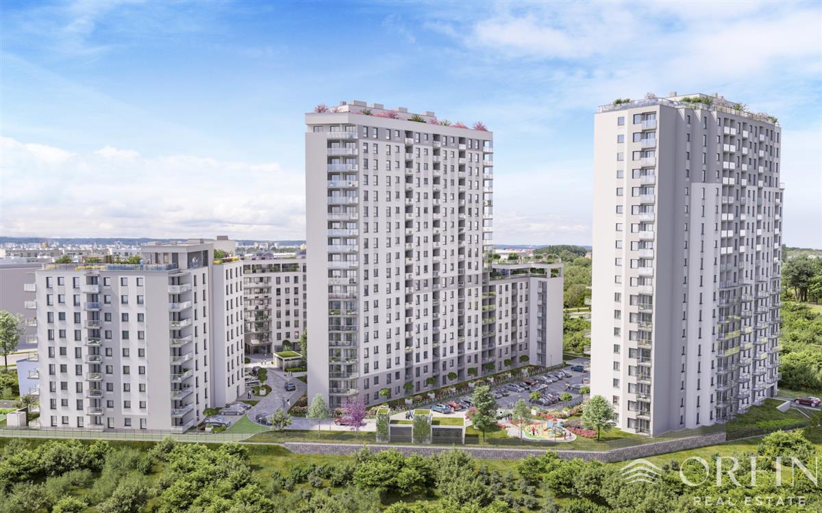 Budynki od 7 do 18 kondygnacji, a na dachu każdego z nich znajduje się wspólna zielona strefa rekreacyjna.