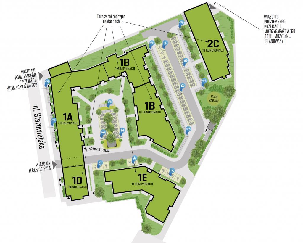 Zespół budynków wielorodzinnych 2,3 lub 4 pokojowych o powierzchni od 26m2 do 98m2.