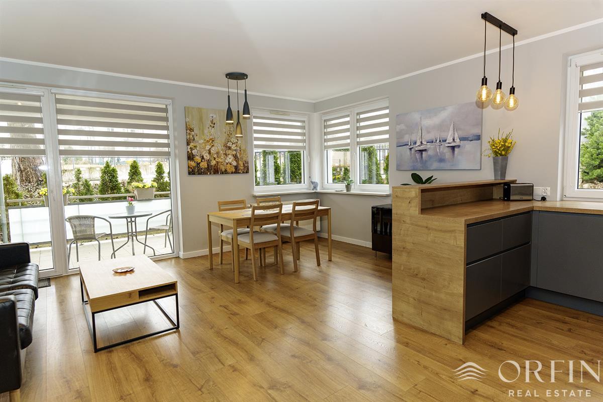 Do wynajęcia komfortowe mieszkanie położone na parterze w nowoczesnym budynku na nowym, spokojnym osiedlu w dzielnicy Mały Kack w Gdyni. Lokal posiada korzystną ekspozycję południowo-zachodnią, dzięki czemu jest bardzo dobrze doświetlony przez większą część dnia.
