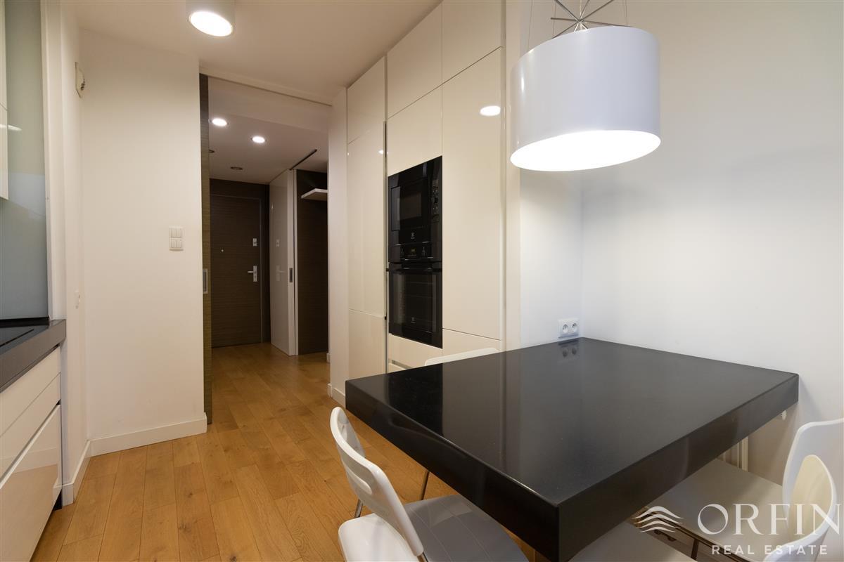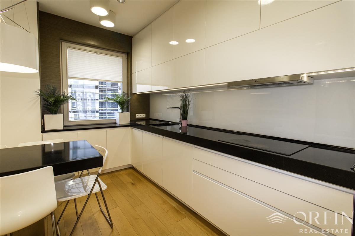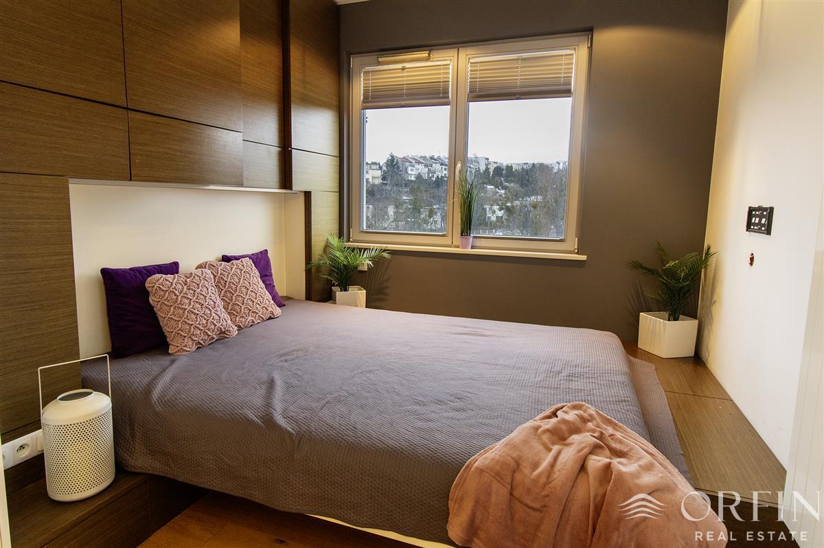 Apartament o powierzchni ponad 56 m2 składa się z pokoju dziennego, sypialni, oddzielnej kuchni z oknem, łazienki oraz pomieszczenia gospodarczego. Z sypialni i salonu znajduje się wyjście na dużą, w pełni oszkloną loggię. W salonie znajduje się zadbana kanapa oraz meble wykonane na zamówienie. Podłoga zachowana w bardzo dobrym stanie z litych, dębowych desek. Kuchnia zaprojektowana na wymiar z pełnym wyposażeniem w zabudowie. Kamienne blaty z granitu dodają stylu i elegancji. W łazience są włoskie, antypoślizgowe gresy, które w połączeniu z ledowym oświetleniem idealnie się komponują, tworząc elegancki styl. Dodatkowo apartament posiada małe pomieszczenie gospodarcze z miejscem na pralkę i suszarkę.