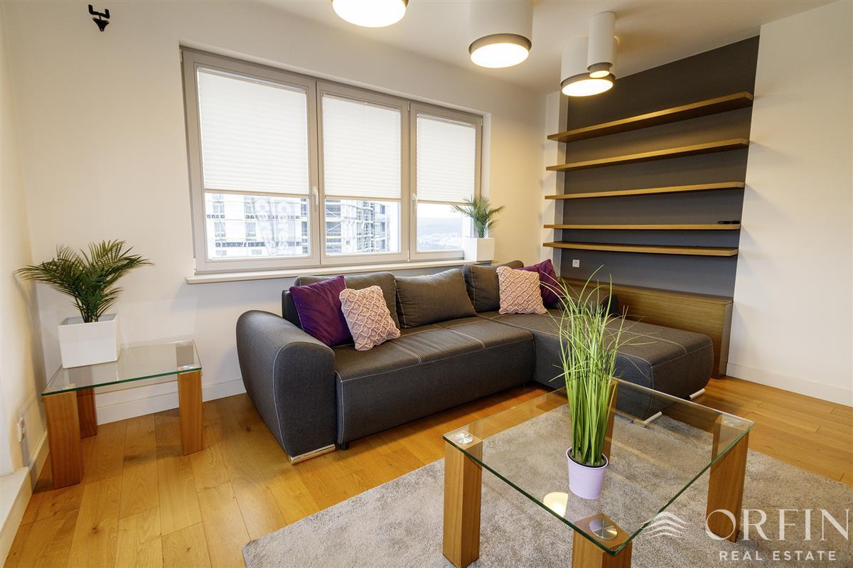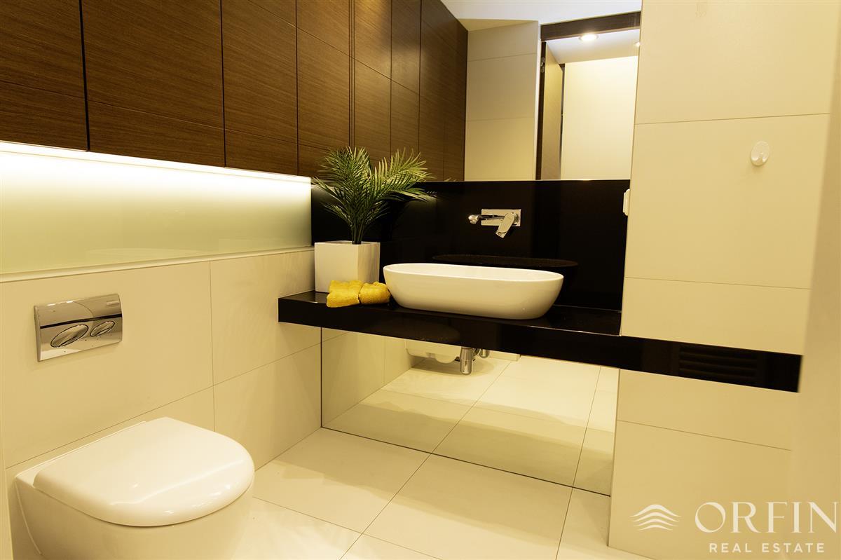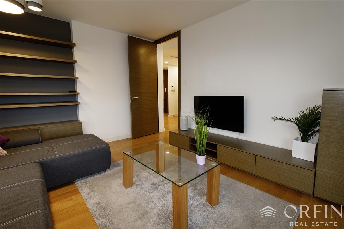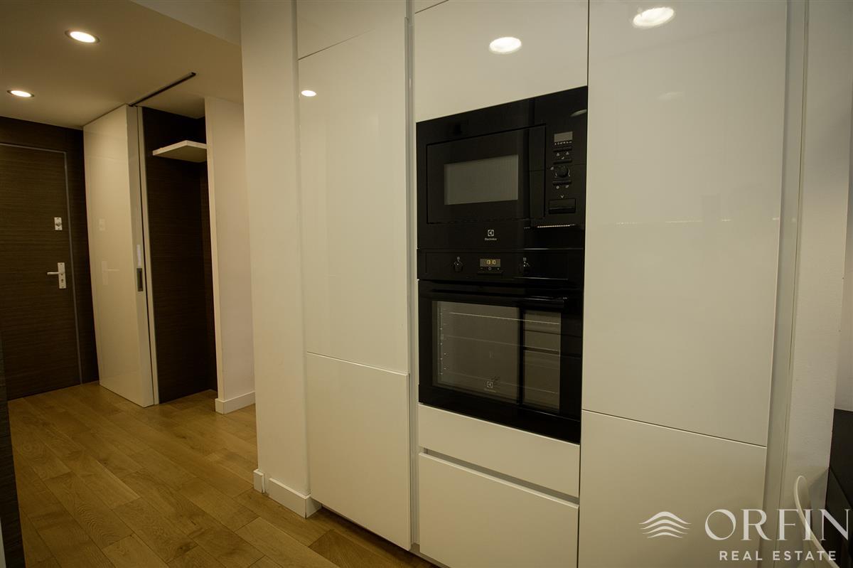 Apartament o powierzchni ponad 56 m2 składa się z pokoju dziennego, sypialni, oddzielnej kuchni z oknem, łazienki oraz pomieszczenia gospodarczego. Z sypialni i salonu znajduje się wyjście na dużą, w pełni oszkloną loggię. W salonie znajduje się zadbana kanapa oraz meble wykonane na zamówienie. Podłoga zachowana w bardzo dobrym stanie z litych, dębowych desek. Kuchnia zaprojektowana na wymiar z pełnym wyposażeniem w zabudowie. Kamienne blaty z granitu dodają stylu i elegancji. W łazience są włoskie, antypoślizgowe gresy, które w połączeniu z ledowym oświetleniem idealnie się komponują, tworząc elegancki styl. Dodatkowo apartament posiada małe pomieszczenie gospodarcze z miejscem na pralkę i suszarkę.