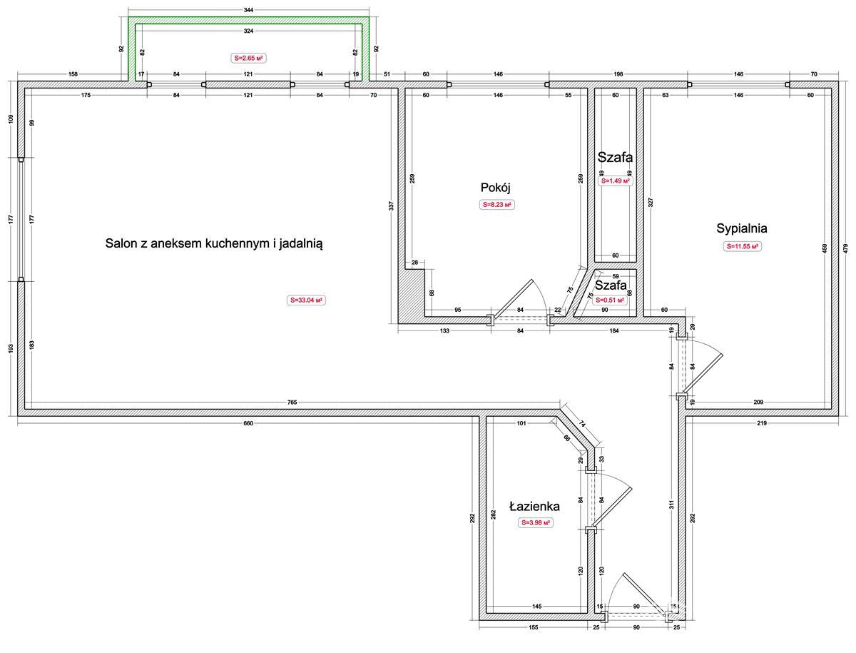 - pokój, nieumeblowany - znajduje się w nim jedynie duża szafa w zabudowie,